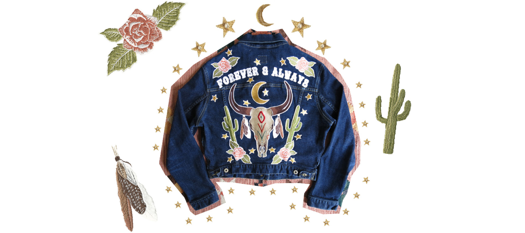 Our jackets are a soft feel indigo wash cotton denim with bronze buttons imprinted with our signature logo